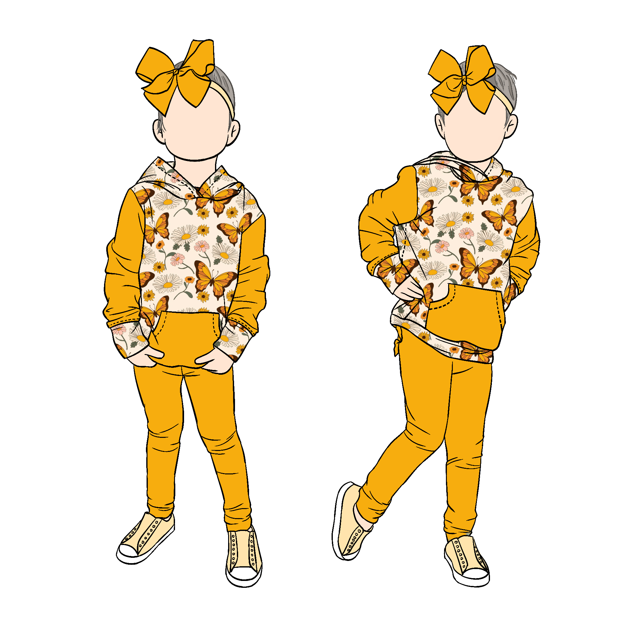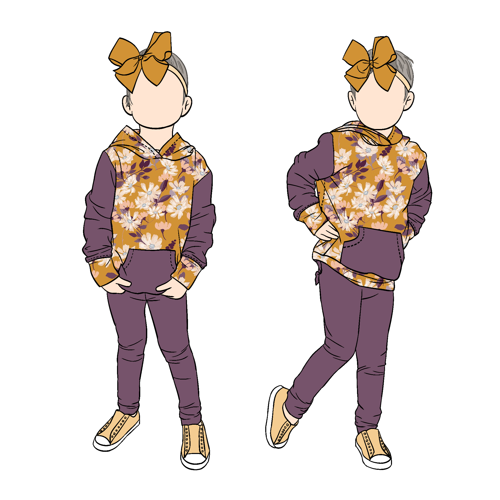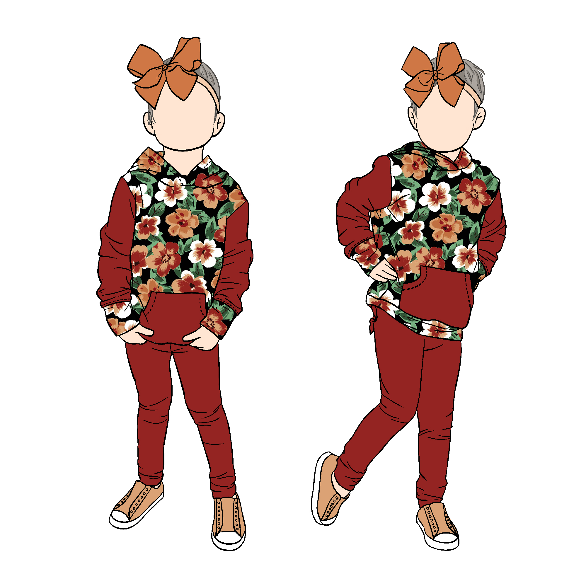 New Arrival Custom Design Floral Print Baby Wear Girls Hoodie Sweatshirts Set Front Pocket Hoodie Matching Solid Pants