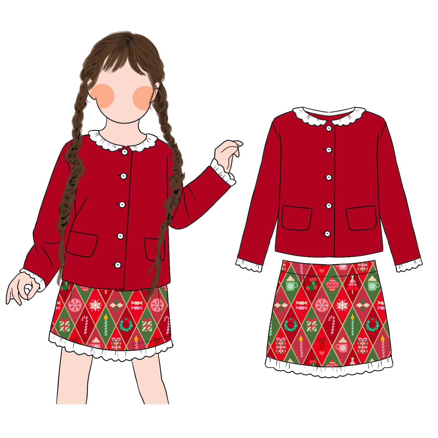 Seasonal Sale Comfortable Floral Hoodie Lace Skirt Dress Set for Girls Teen Kids Christmas Inspired Lined for Autumn